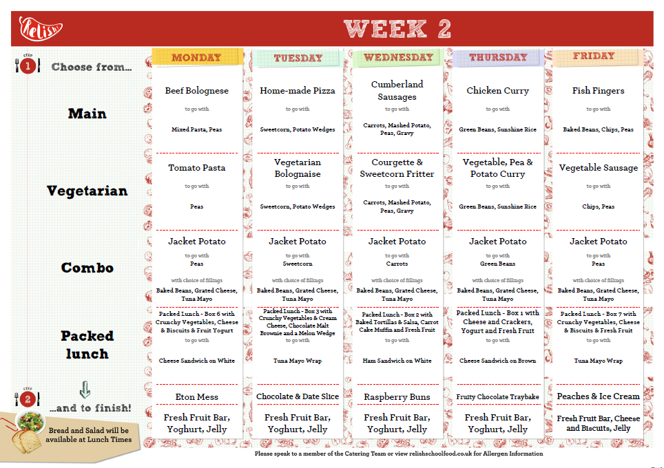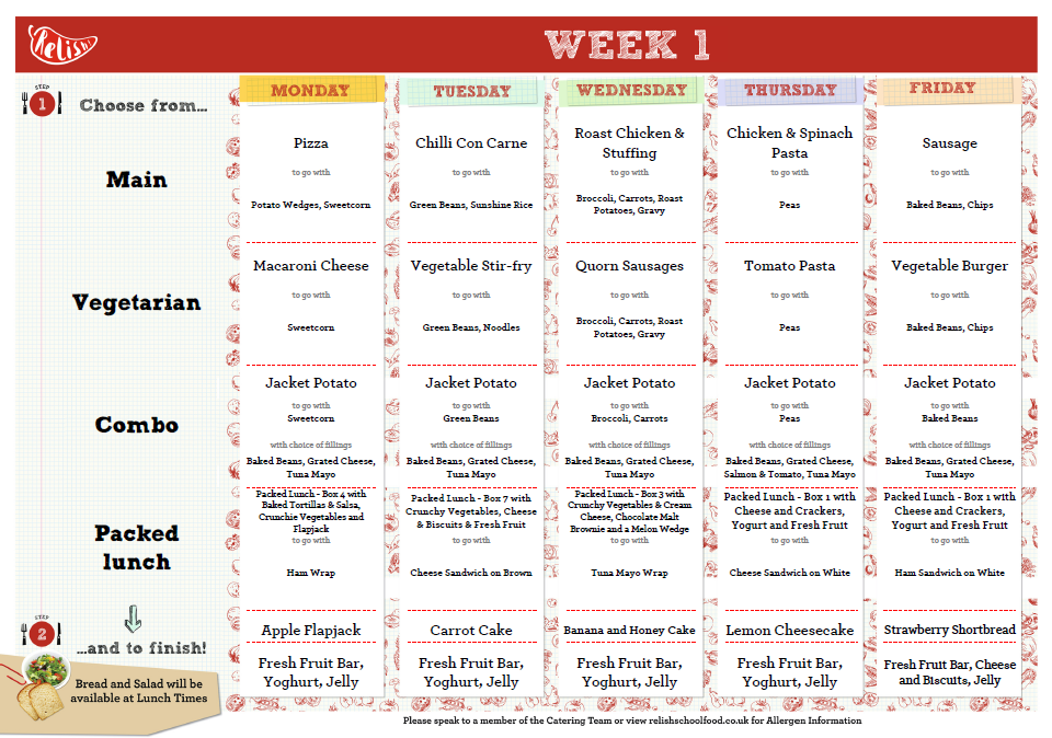 Please see below our Primary Weekly Menus.